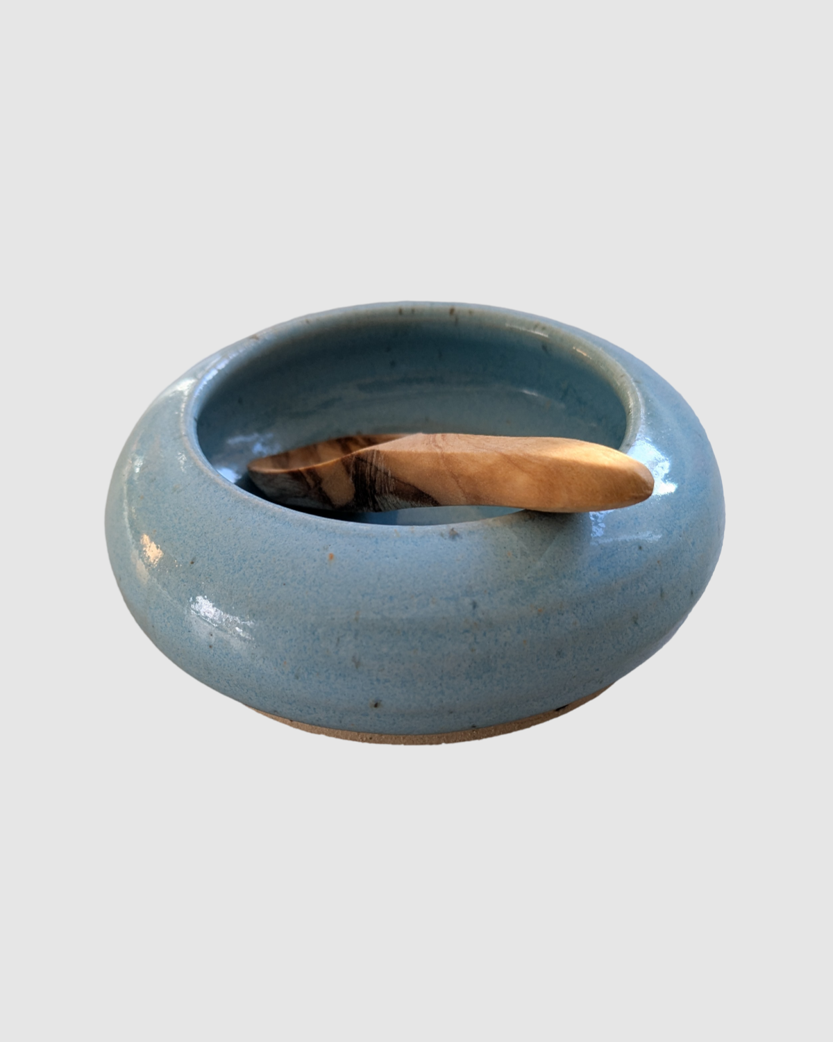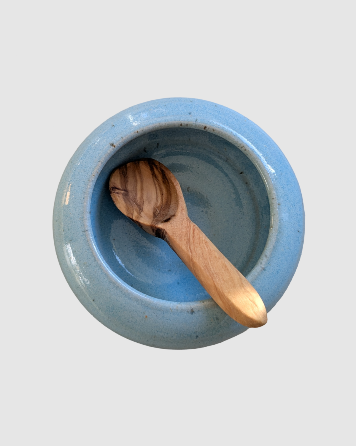 Hånddrejet saltkar med træske - Lyseblå glaseret