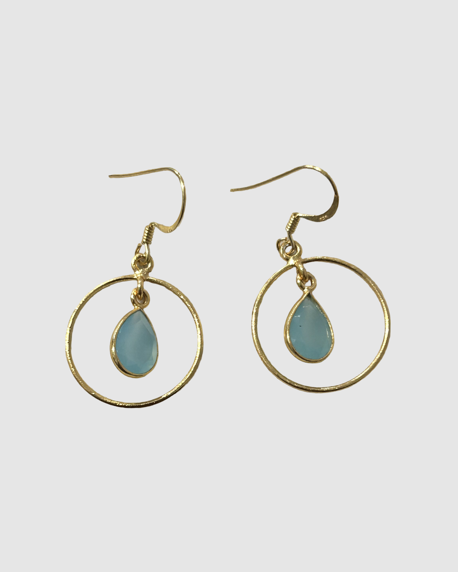 Håndlavet guld ørering med 1 naturlig ædelsten i ring
