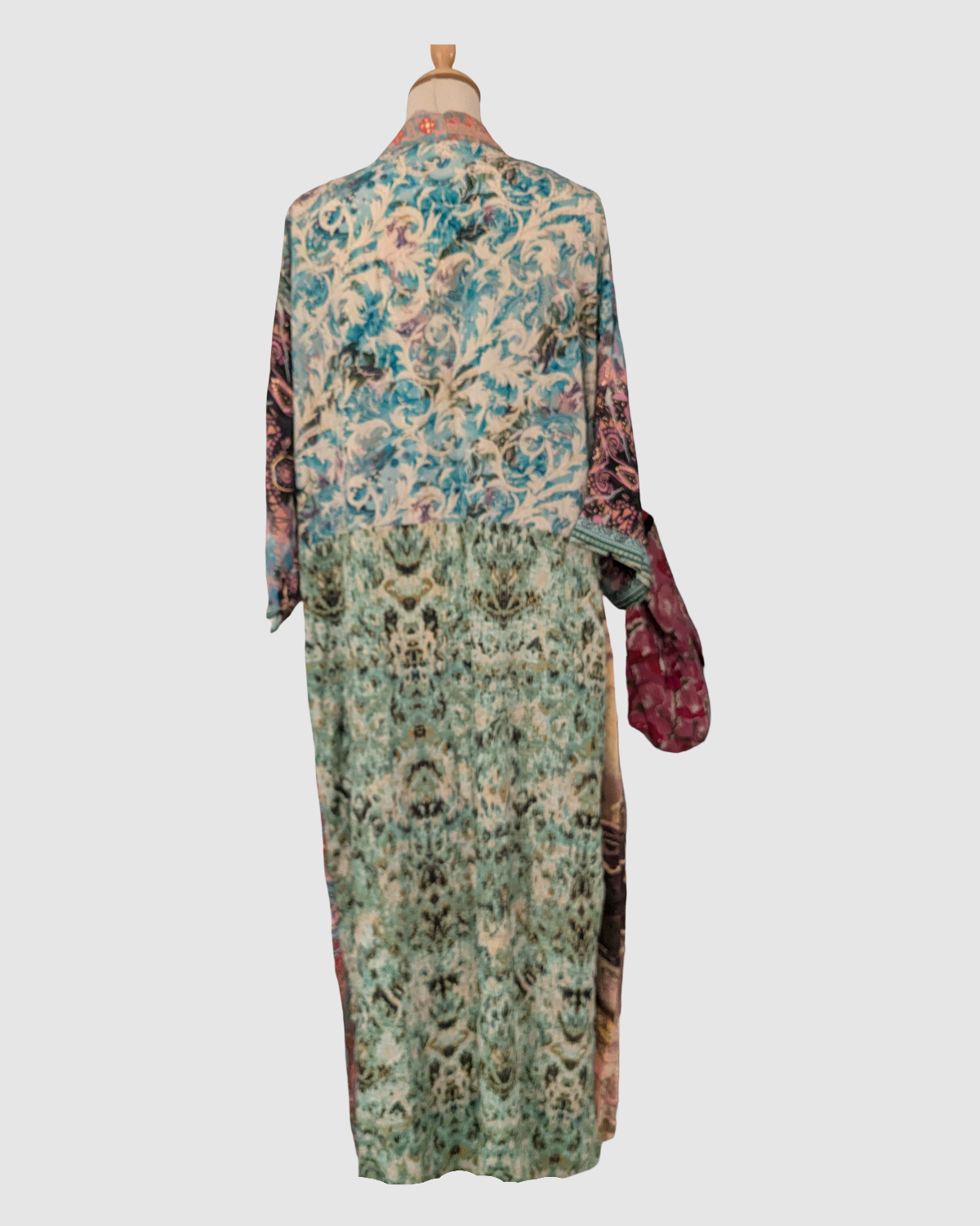 Lang silke kimono i blomstret multifarvet- Håndlavet i Indien - Liv