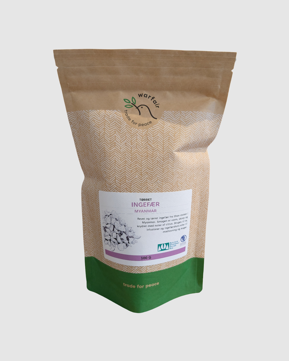 Ingefæren er dyrket uden brug af sprøjtemidler og kunstgødning og er lokalt certificeret i Myanmar.